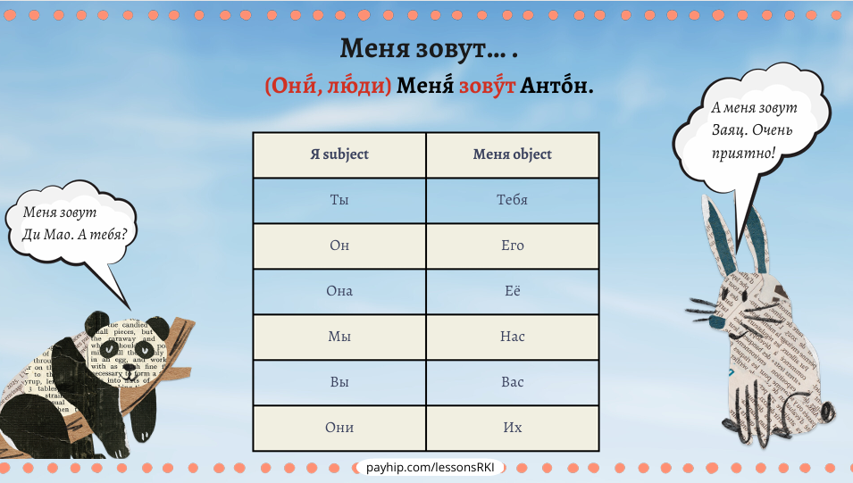 Lesson 5. Personal pronouns (Accusative case). What’s your name?